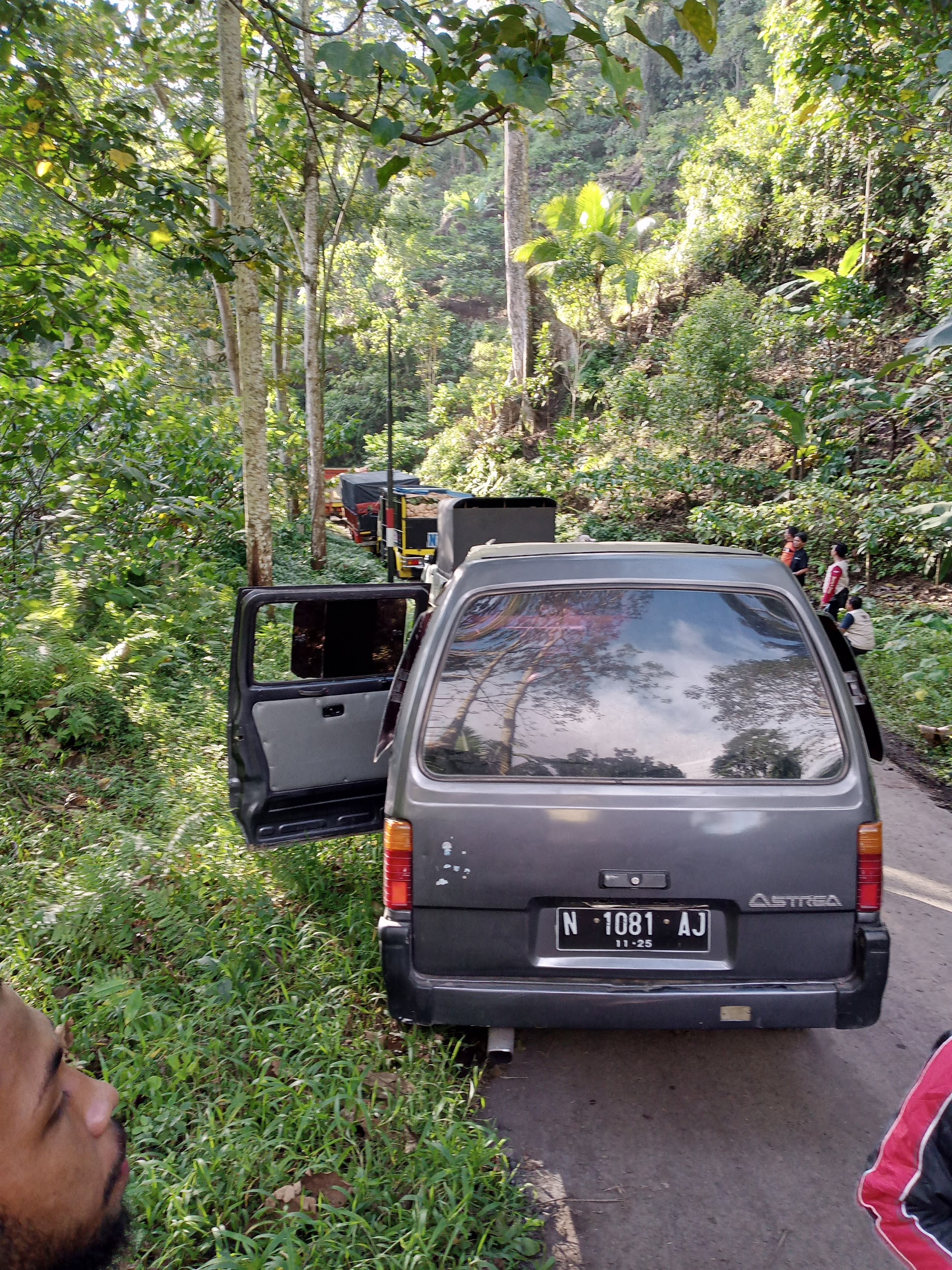 Setelah menikmati durian kami pamit untuk kembali melanjutkan perjalanan ke kota malang. Dalam perjalanan pulang ini kami harus melewati jalan yang lebih ekstrim dari sebelumnya. Jalan yang kami tempuh ini harus lebih berhati-hati dikarenakan jalannya yang terus nanjak, sempit, dipinggir jurang, berkelak-kelok dan aspalnya sudah rusak. Ketika menanjaki jalan mobil rekan-rekan dari YBM PEDULI tidak kuat naik dan sempat mundur yang membuat kami panik dan cemas. Mobil tersebut mundur tepat di depan mobil Dr. Abu Sholih dan sudah mendekati bibir jurang. Alhamdulillah ‘ala kulli hal, saat akan mengikuti mobil tersebut di tanjakan, mobil yang dibawa oleh Dr. Abu Sholih-pun mati mesin sehingga tidak bisa maju. Alhamdulillah juga karena ini, kedua mobil tersebut tidak sampai bertabrakan dan Alhamdulillah dengan izin Allah kami bisa menaiki jalan tersebut.